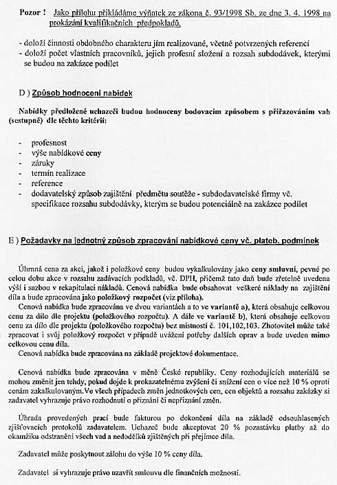 | Nabídka: 1. dle referenčních listů 2. 1051686,30 Kč 3. 36 měsíců 4. 6/2000 5. vlastní |