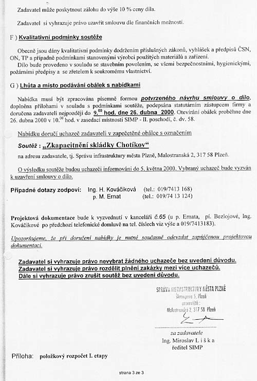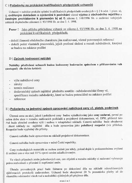 | Nabídka: 1. 5 012 408 Kč 2. 36 měsíců 3. 4.-8.měs. 2000 4. vlastní 5. dle referenčních listů |