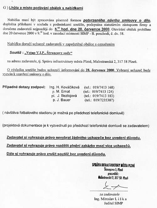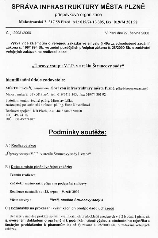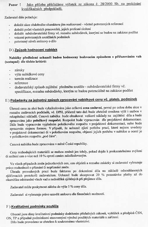 | Nabídka: 1. 798 038 Kč 2. 36 měsíců 3. 9.9. 2000 4. nepotvrzeny 5. dle předložených podkladů |