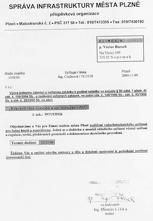 | Místo plnění | Zimní stadion |