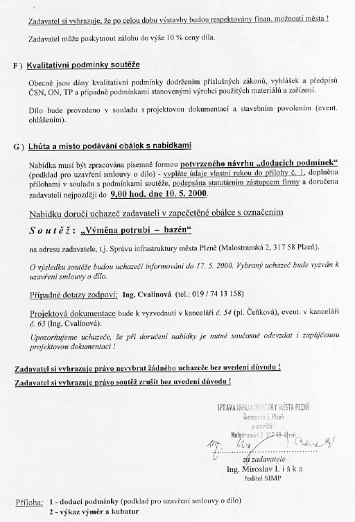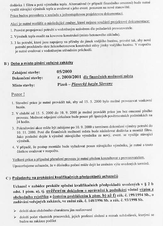 | Nabídka: 1. dle přehledu zakázek obdobného charakteru 2. 2 097 590 Kč 3. vlastní 4. 36 měsíců 5. 01/2001 |
