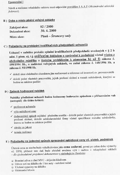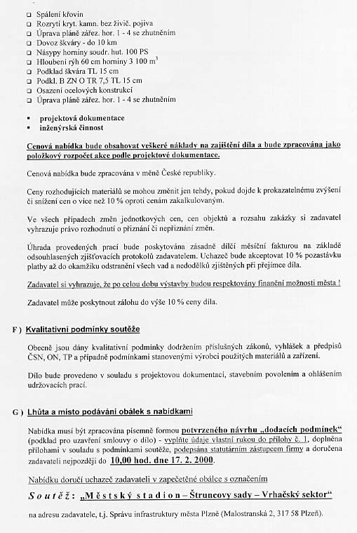 | Předmět zakázky | Městský stadion - Štruncovy sady - vrhačský sektor - realizace stavebních prací, PD a IČ |