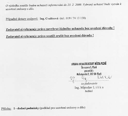 | Hodnotící kritéria | 1. profesnost 2. cena 3. dodavatelský způsob 4. záruka 5. termín |