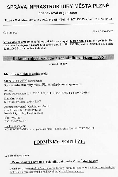 | Místo plnění | Plzeň-Doudlevce - Zimní stadion |