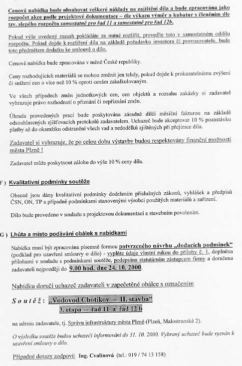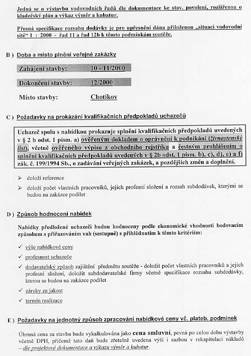 | Nabídka: 1. 2 598 854 Kč 2. dle referenčních listů 3. vlastní 4. 48 měsíců 5. 20.12.2000 |