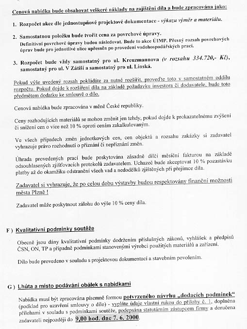 | Nabídka: 1. dle referenčních listů 2. 2 364 714,50 Kč 3. subdodavatelé 4. 60 měsíců 5. 09/2000 |
