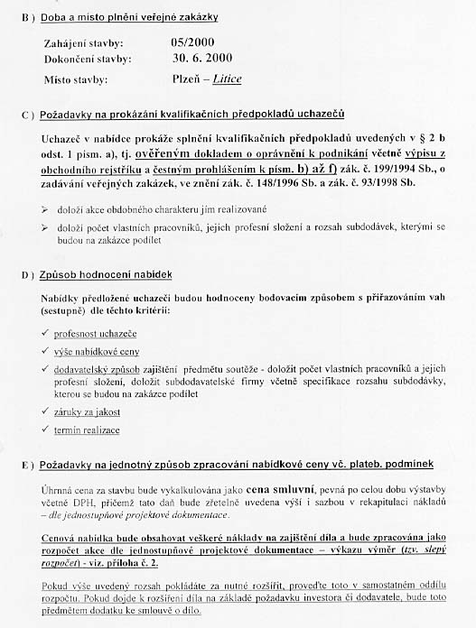 | Nabídka: 1. dle referenčních listů 2. 1 157 177,70 Kč 3. vlastní 4. 48 měsíců 5. 30.6.2000 |