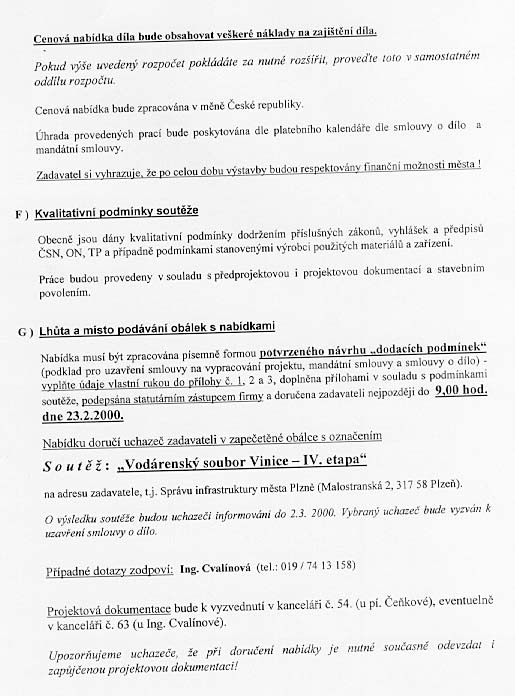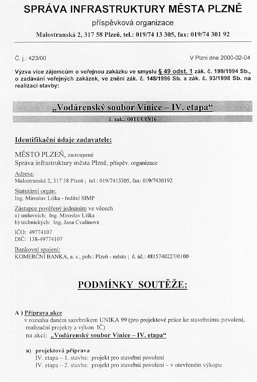 | Předmět zakázky | Vodárenský soubor Vinice - IV. etapa - projektové práce ke stavebnímu povolení, realizační projekty - výkon inženýrské činnosti |