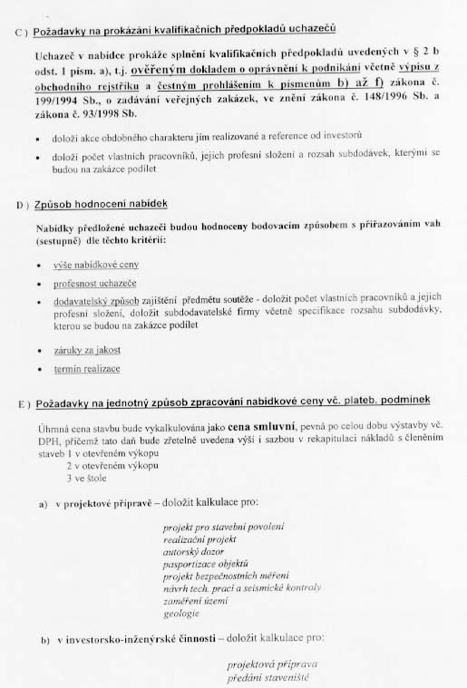 | Hodnotící kritéria | 1. cena 2. profesnost 3. dodavatelský způsob 4. záruka 5. termín |
