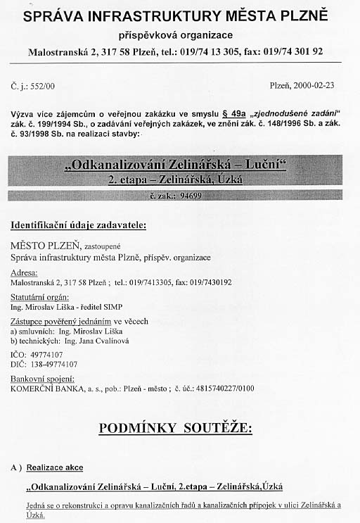 | Předmět zakázky | Odkanalizování Zelinářská - Luční, 2.etapa - Zelinářská - Úzká - Rekonstrukce a oprava kanalizačních řadů a přípojek |