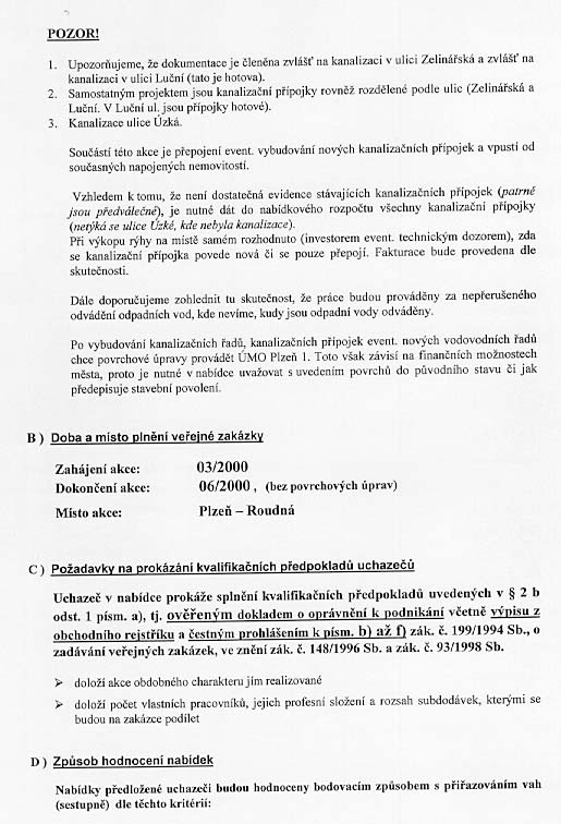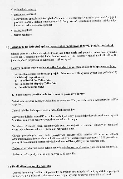 | Hodnotící kritéria | 1. cena 2. profesnost 3. dodavatelský způsob 4. záruka 5. termín |