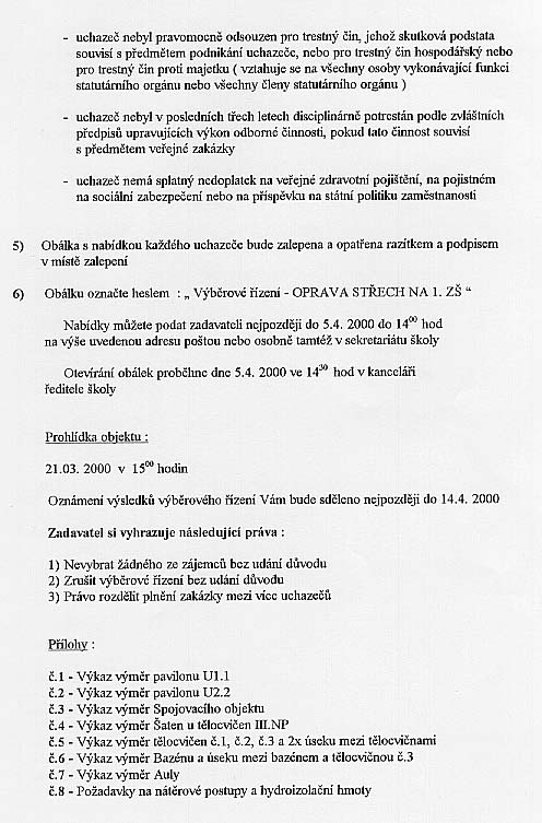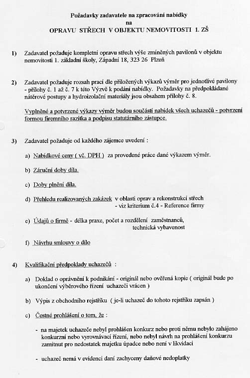 Oprava střech v objektu nemovitosti 1. ZŠ |