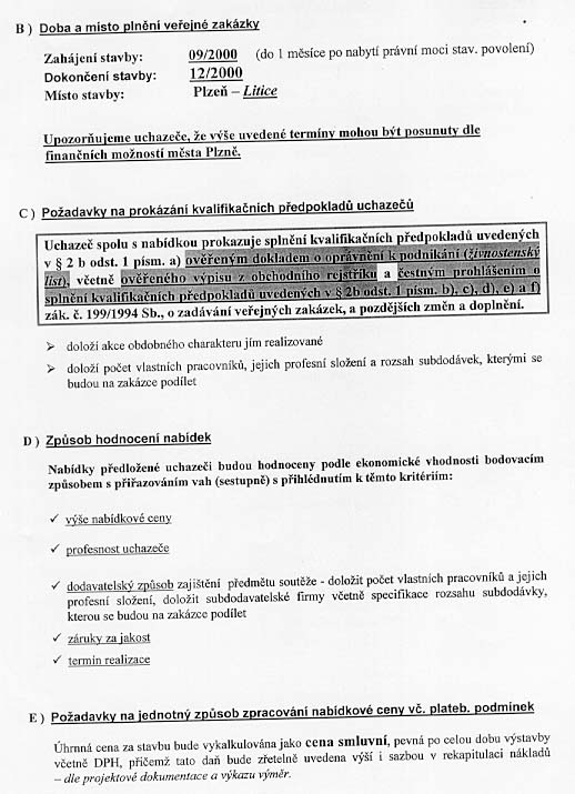 | Nabídka: 1. 1 039 873 Kč 2. dle referenčních listů 3. vlastní 4. 60 měsíců 5. 22.12.2000 |