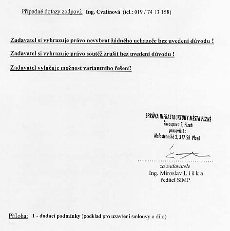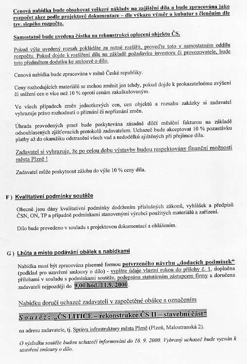 | Nabídka: 1. 1 086 636 Kč 2. dle referenčních listů 3. subdodavatelé 4. 36 měsíců 5. 31.12.2000 |