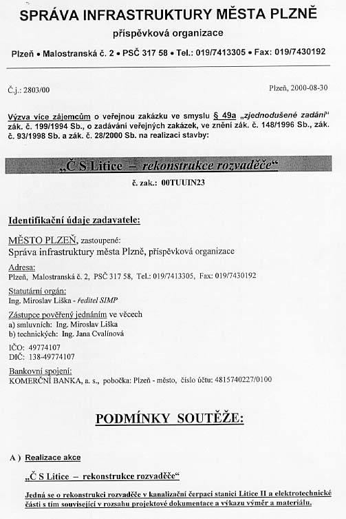 | Předmět zakázky | ČS Litice - rekonstrukce rozvaděče - rekonstrukce rozvaděče a elektr.části v kanal.ČS Litice II |