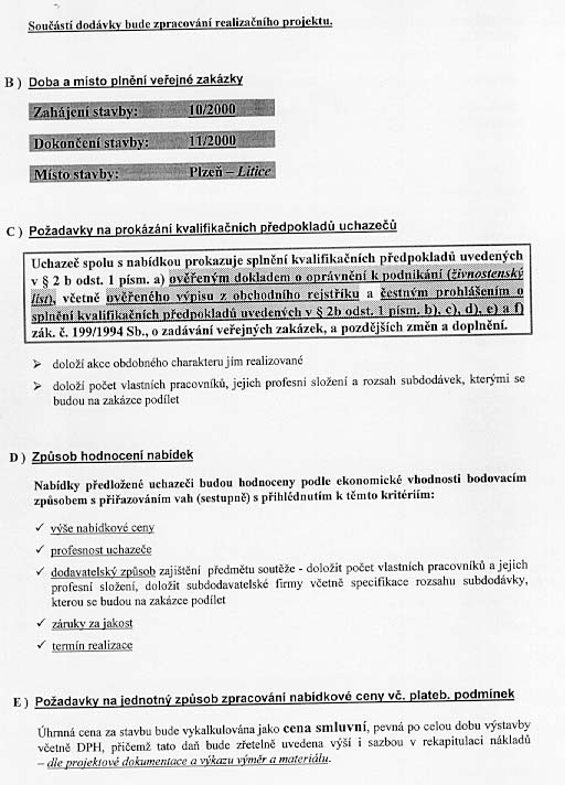 | Nabídka: 1. 299 670 Kč 2. dle referenčních listů 3. vlastní 4. 18 měsíců 5. 30.11.2000 |