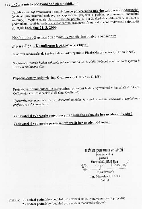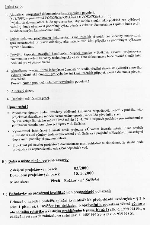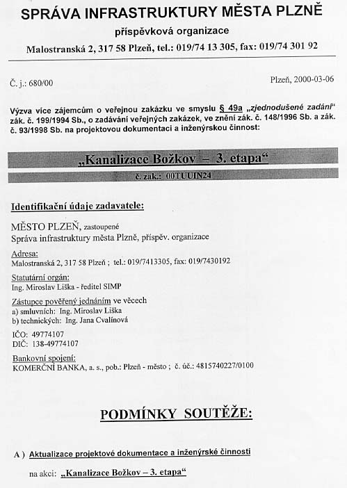 | Předmět zakázky | Kanalizace Božkov - 3.etapa - vypracování projektové dokumentace, výkon inženýrské činnosti |