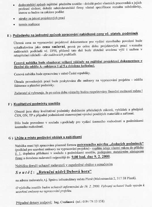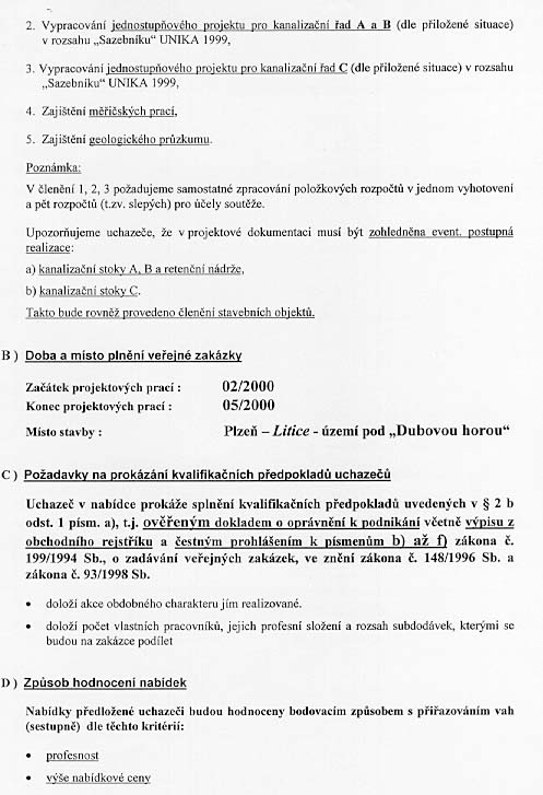 | Nabídka: 1. dle referenčních listů 2. 398 216,50 Kč 3. vlastní 4. 24 měsíců 5. 31.5.2000 |