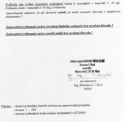 | Nabídka: 1. dle referenčních listů 2. 370 825,70 Kč 3. vlastní 4. 180 měsíců 5. 25.5.2000 |