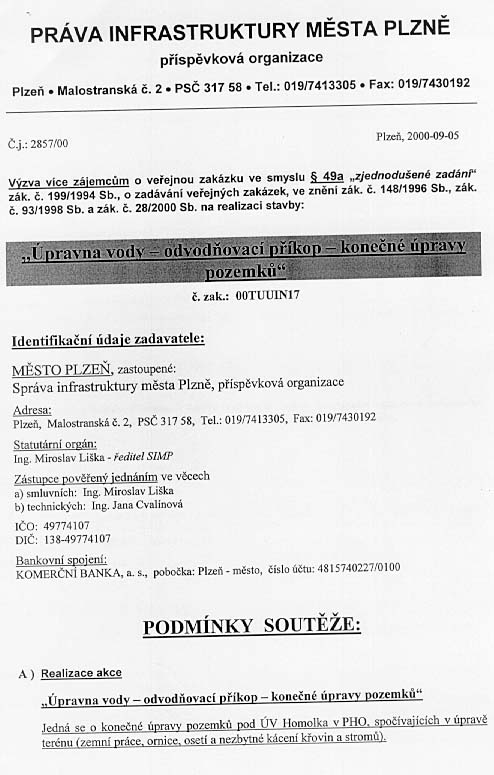 | Předmět zakázky | Úpravna vody - odvodňovací příkop - konečné úpravy pozemků |