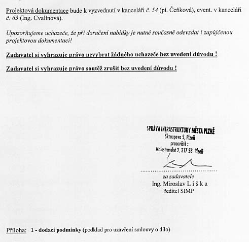 | Hodnotící kritéria | 1. cena 2. profesnost 3. dodavatelský způsob 4. záruka 5. termín |