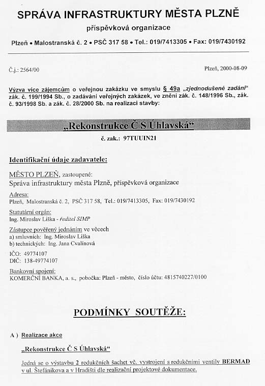 | Předmět zakázky | Rekonstrukce ČS Úhlavská |