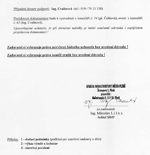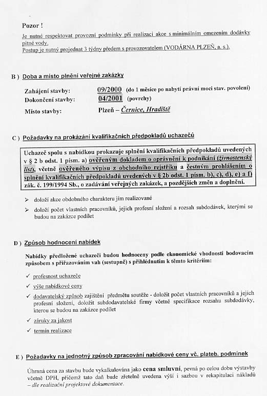 | Hodnotící kritéria | 1. profesnost 2. cena 3. dodavatelský způsob 4. záruka 5. termín |