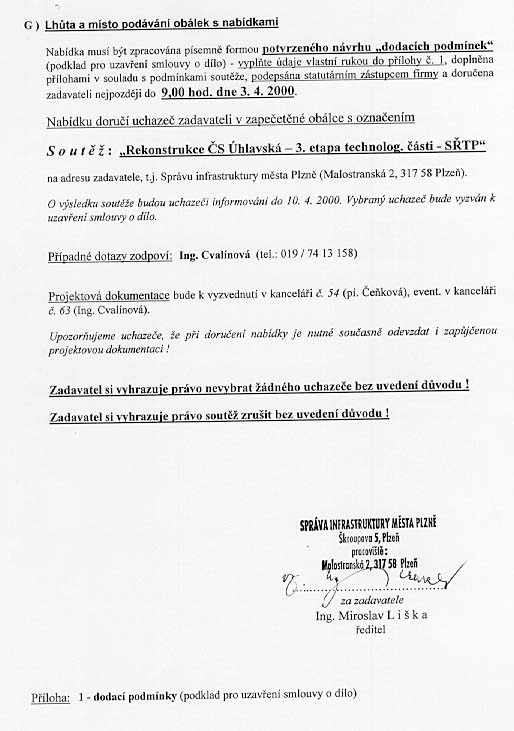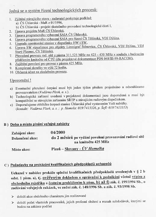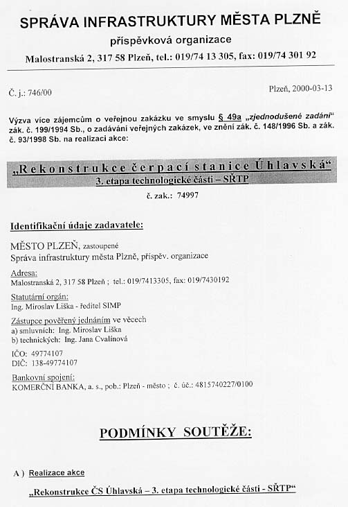 | Předmět zakázky | Rekonstrukce ČS Úhlavská - 3. etapa technologické části - SŘTP |