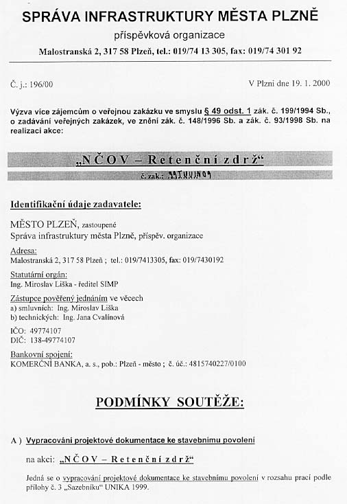 | Předmět zakázky | NČOV - Retenční zdrž - zpracování projektové dokumentace ke SP pro 1 retenční nádrž |