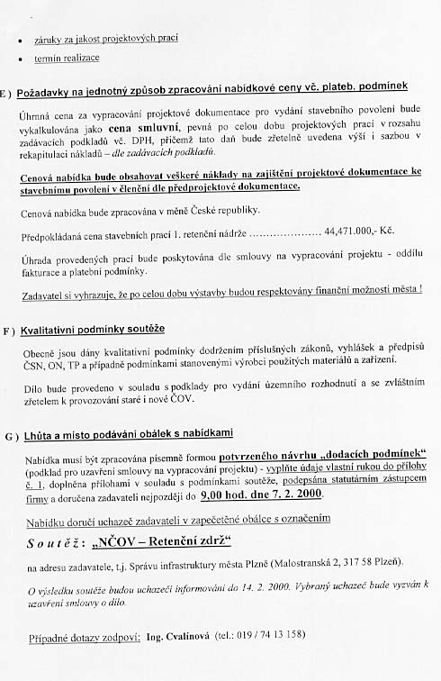 | Nabídka: 1. dle referenčních listů 2. 1 175 967,50 Kč 3. vlastní 4. 120 měsíců 5. 15.5.2000 |
