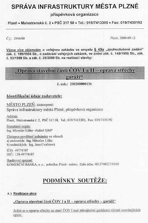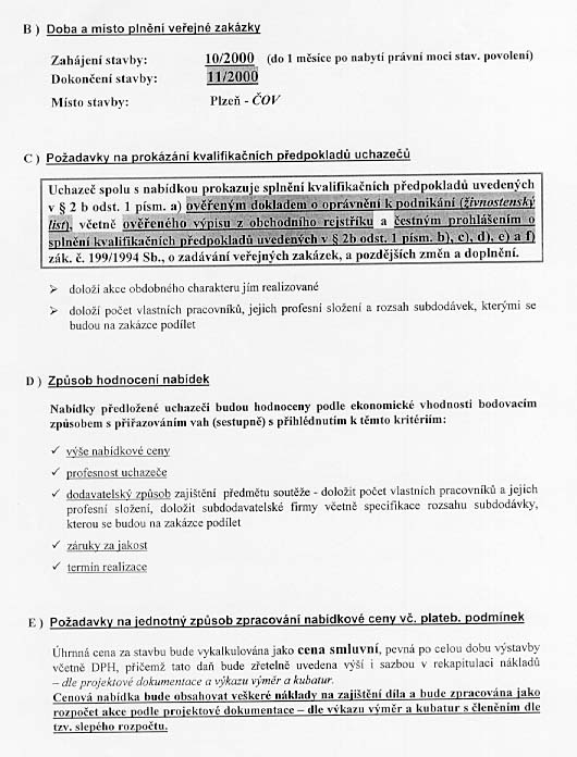 | Nabídka: 1. 829 969 Kč 2. dle referenčních listů 3. vlastní 4. 36 měsíců 5. 30.11.2000 |
